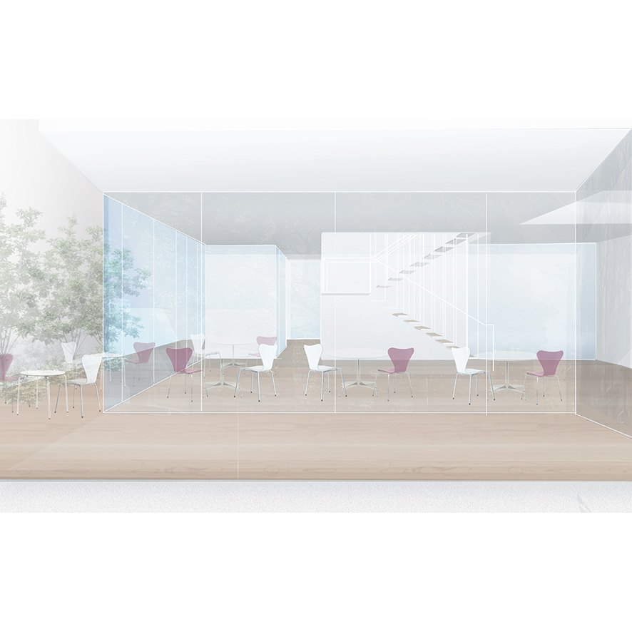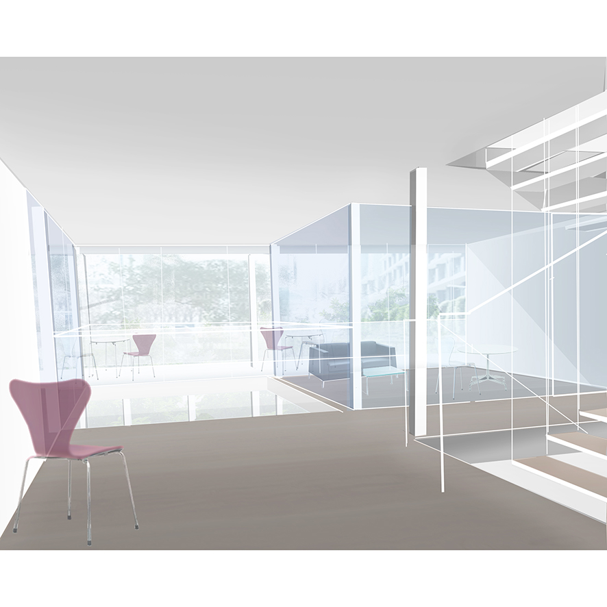 千葉市では主な経済活動が海浜地区に移り、当ビルのある県庁周辺地区は空家オフィス街となり地域住民の高齢化も進んでいます。「少しでも地域に貢献したい」という職員の方の希望を受けて、実現を目的とせず、地方都市の社会問題に対する一つの提案をしました。一階は当事務所機能に隣接して地域のおじいさん、おばあさんが立ち寄っておしゃべりできるパブリックスペース、二階から四階は若い起業家たちのためのシェアオフィスと単身者向けのストゥディオを配置しています。