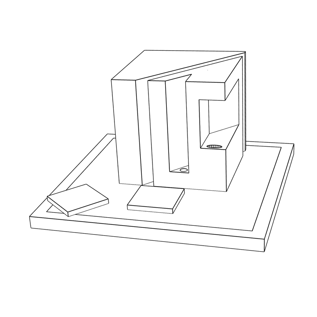 This tomb for my parents is located in a small Zen temple called Fumon-ken, situated on the outskirts of Kyoto. The design is based on Kyoto’s historical urban structure known as the ‘jyo-ri system,’ the typical sacred sites of the Kansai region (900mm x 900mm), and the misalignment of the urban grid and the orientation of the site, resulting in a cube being carved out.